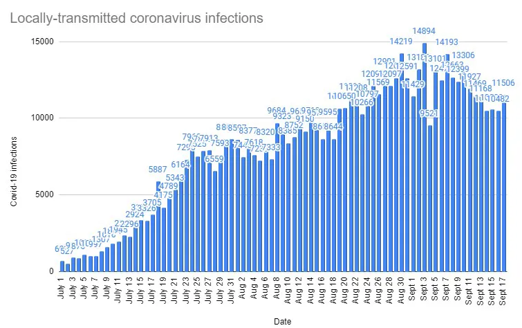 Vietnam saw 11,521 Covid-19 infections and 212 deaths in the past 24 hours, including 86% and 91%, respectively, in Ho Chi Minh City and Binh Duong combined.