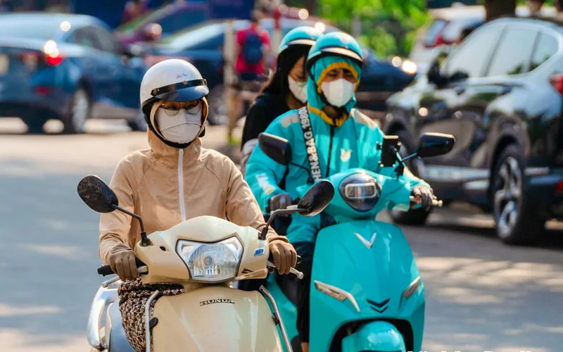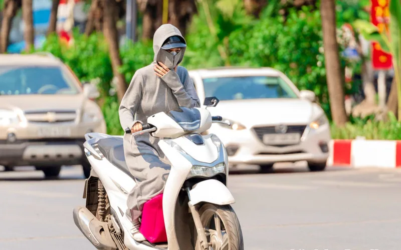 When people go out, they have to wear many layers of clothing and masks to protect their entire bodies from the fiery heat of Hanoi. Photo: Duy Khanh/The Hanoi Times |