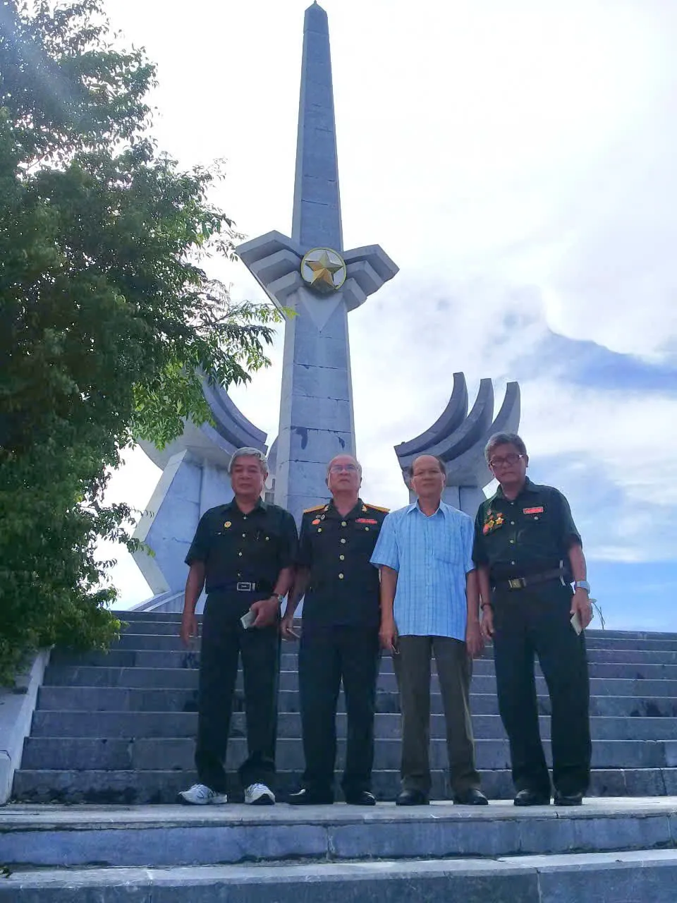 Nguyen Thanh Binh (second from right) with comrades who once fought alongside him at Quang Tri Ancient Citadel.