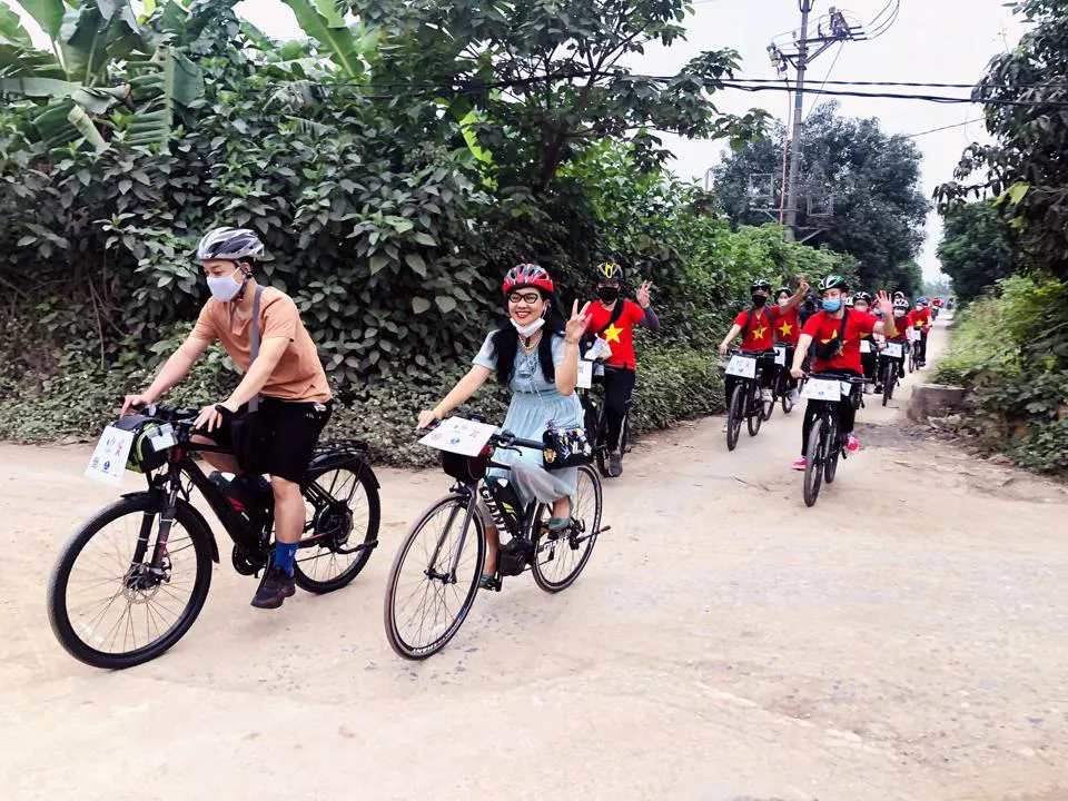 | Visitors ride bicycles to Bat Trang craft village in Gia Lam District, Hanoi. Photo: Economic and Urban Newspaper |