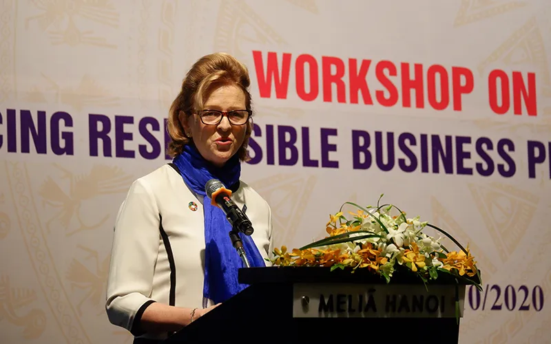 Speaking at national consultation workshop titled “Advancing responsible business practice in Viet Nam” in Hanoi on October 21, UNDP Resident Representative in Vietnam Caitlin Wiesen highlighted the opportunity for Vietnam to advance responsible business practice, which differs from corporate social responsibility (CSR), which is voluntary in nature.