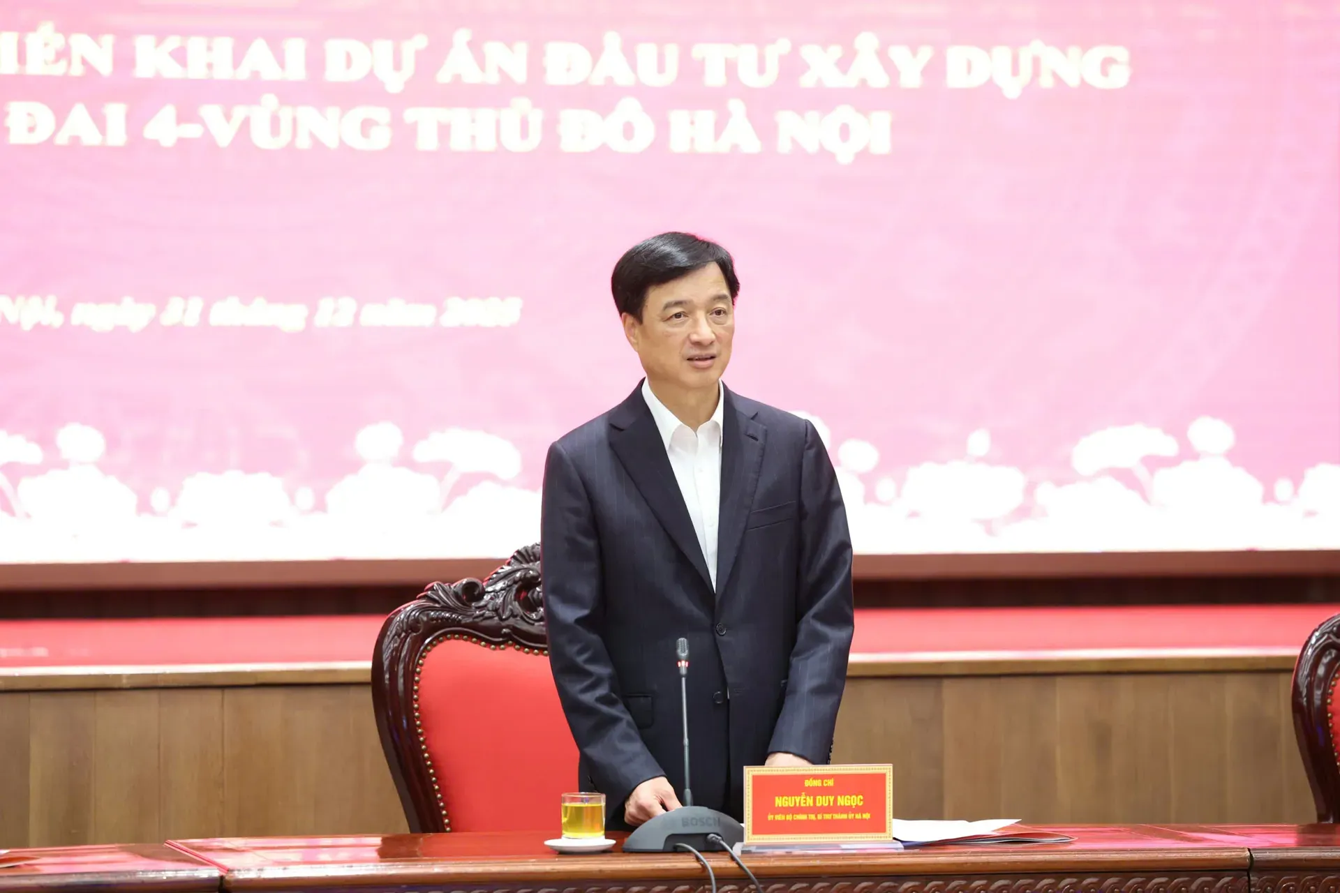 Hanoi Party Secretary Nguyen Duy Ngoc calls on stronger efforts among Hanoi, Bac Ninh and Hung Yen provinces to complete the project by November 2027. Photo: Thanh Hai/The Hanoi Times