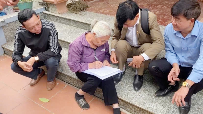 Local officials of O Dien Commune speak and convince residents to agree on land clearance. Photo: Duy Linh/The Hanoi Times