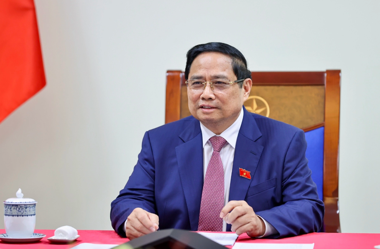Prime Minister Pham Minh Chinh during the phone call. Photo: VGP