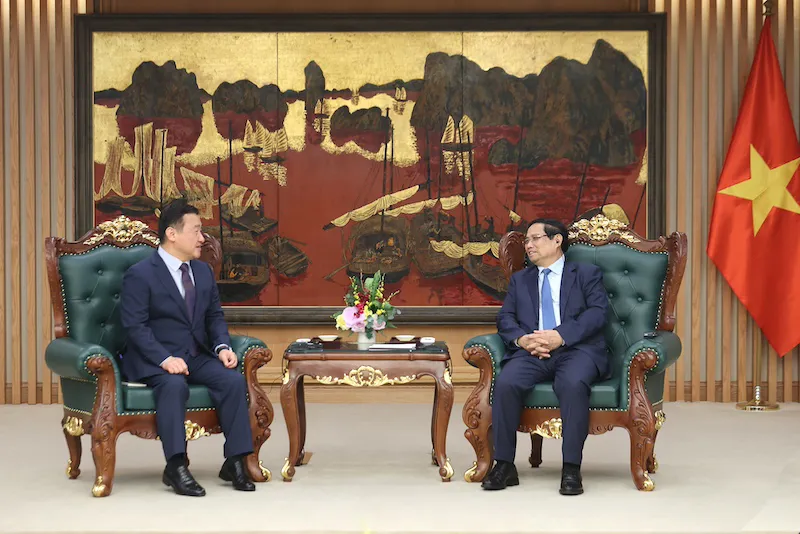 Roh Tae-Moon, CEO of Samsung Electronics (left) and Prime Minister Pham Minh Chinh at the meeting on August 26 in Hanoi.