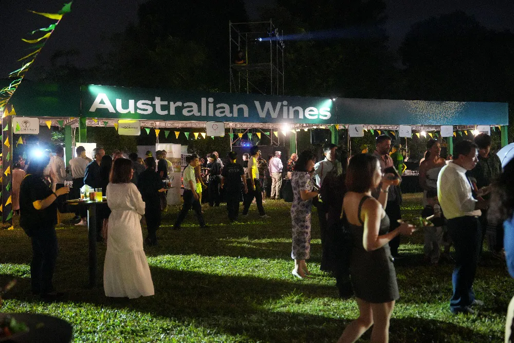 A large number of Australian cuisine booths on display featured wines, grilled meats, desserts, and fruits. Art performances were also included at the grand party.