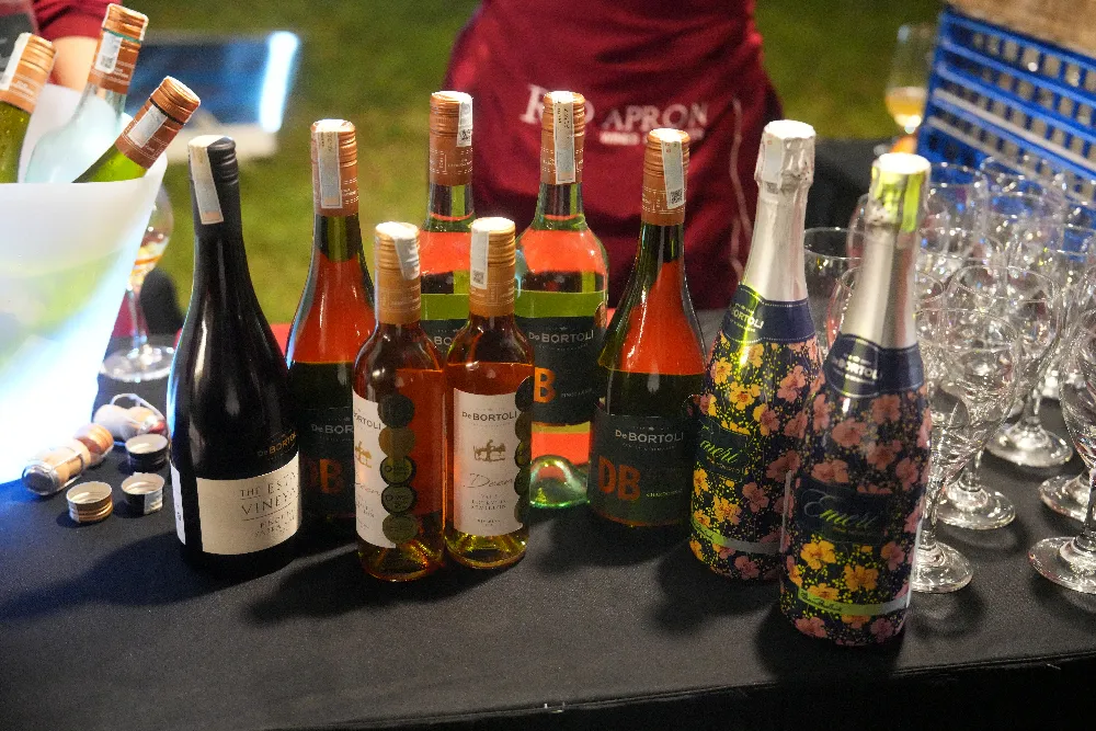 | Some kinds of Australian wine are on display and served. |