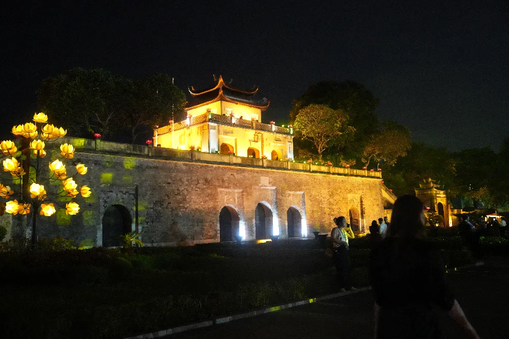 | Thang Long Imperial Citadel sparkling in the night. |