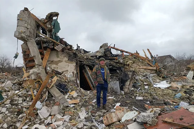 | A Ukrainian man stands in the rubble in Zhytomyr following a Russian missile strike. Photo: AFP/VNA |