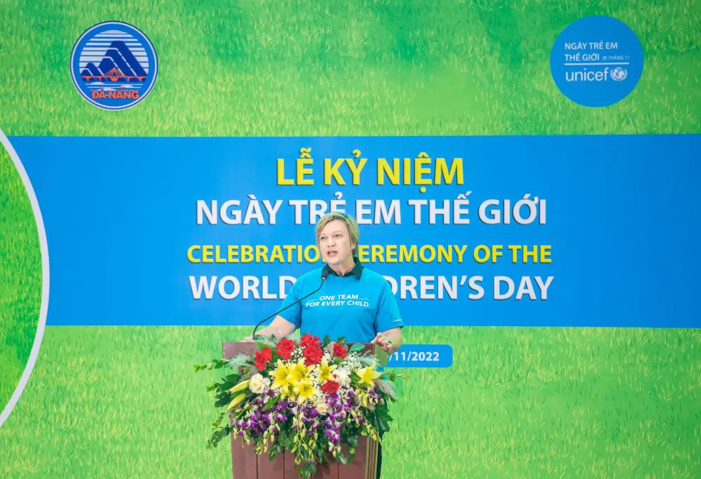 Rana Flowers, UNICEF Representative in Vietnam, delivered the message on World Children’s Day (WCD), celebrated on November 20 in Danang, Vietnam, to mark the anniversary of the adoption of the Convention on the Rights of the Child (CRC) in 1989.