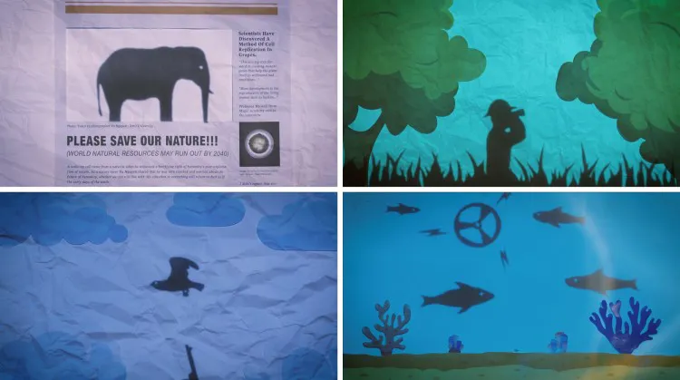 "To emphasize this point, we added texture to the paper. The cut paper was used to create shadows, which are the main objects in this project. Shadows usually have a negative connotation, and in this case, we used them to highlight the negative impact of inhumane activities on the environment," Nghi added.