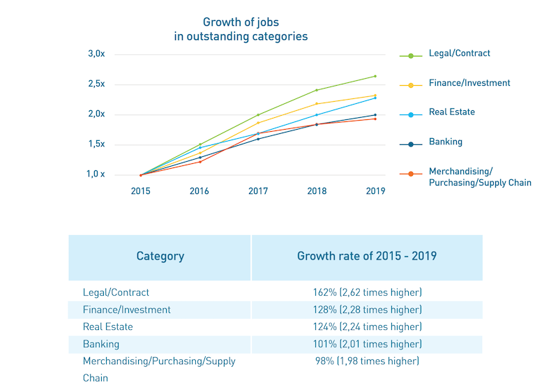 | Top 5 Categories with outstanding growth in labor supply. Chart: VietnamWorks |