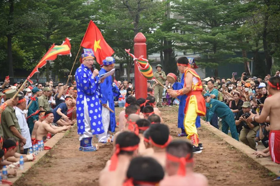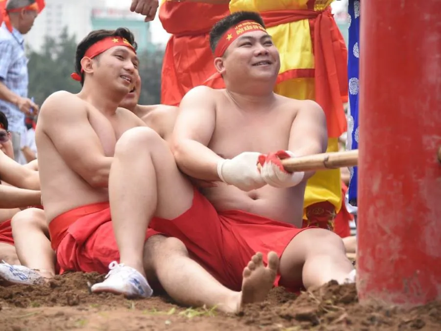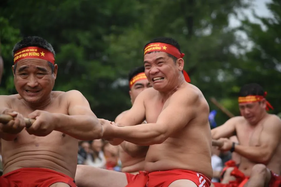 Tug-of-war is played all over the world, but sitting tug-of-war is its funkier version. This ancient game can only be found at the Tran Vu Temple Festival in Thach Ban Ward of Long Bien District on the outskirts of Hanoi.