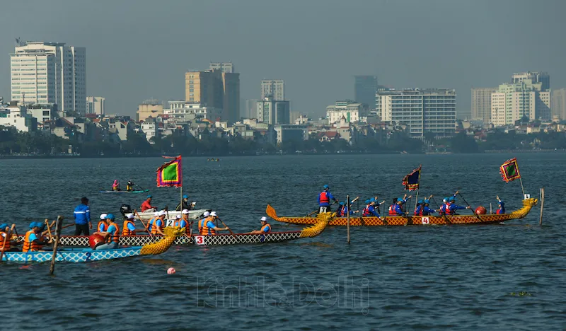 Hanoians and foreign visitors enjoyed impressive boat regatta in the Hanoi Dragon Boat Racing Festival held in West Lake on November 14.
