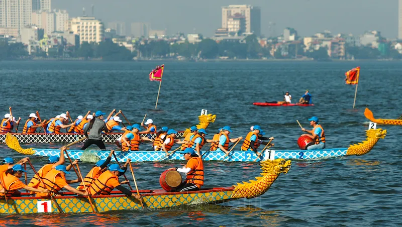 Snapshots of bustling atmosphere at Hanoi Dragon Boat Racing Festival