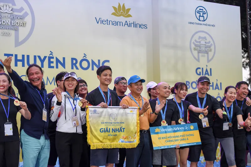 The regatta attracted 550 rowers of 31 teams from 22 delegations in cities and provinces, six organizations which are the United Nations organizations and the embassies of the UK, Denmark, Sweden, Australia and the US, as well as Vietnamese companies. Photo: Vietnam Airlines |