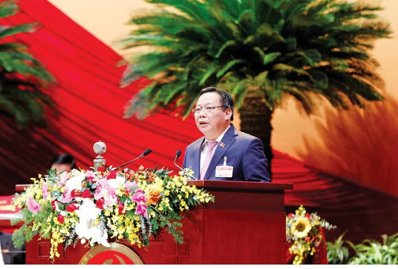 Hanoi Deputy Secretary of the Party Committee Nguyen Van Phong addresses the Congress.