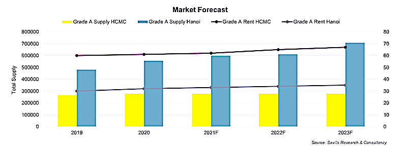 By 2023, the city will have more Grade A projects concentrating in Ba Dinh district (situated in mid-town area) and Cau Giay district in the West. The average rent is expected to increase up to US$35 - US$37 per square meter per month.