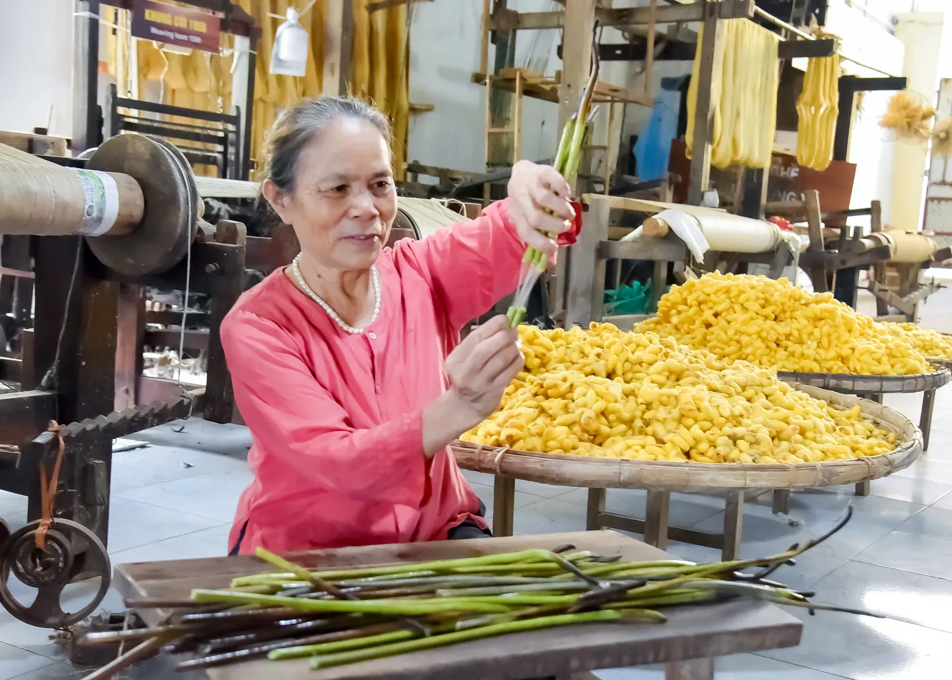 Visitors can witness and participate in every stage of silk-making, regardless of mulberry cultivation, spinning and weaving. Meritorious Artisan Phan Thi Thuan, known for lotus-fiber weaving, said: “Every product carries a story, a history and a livelihood.”