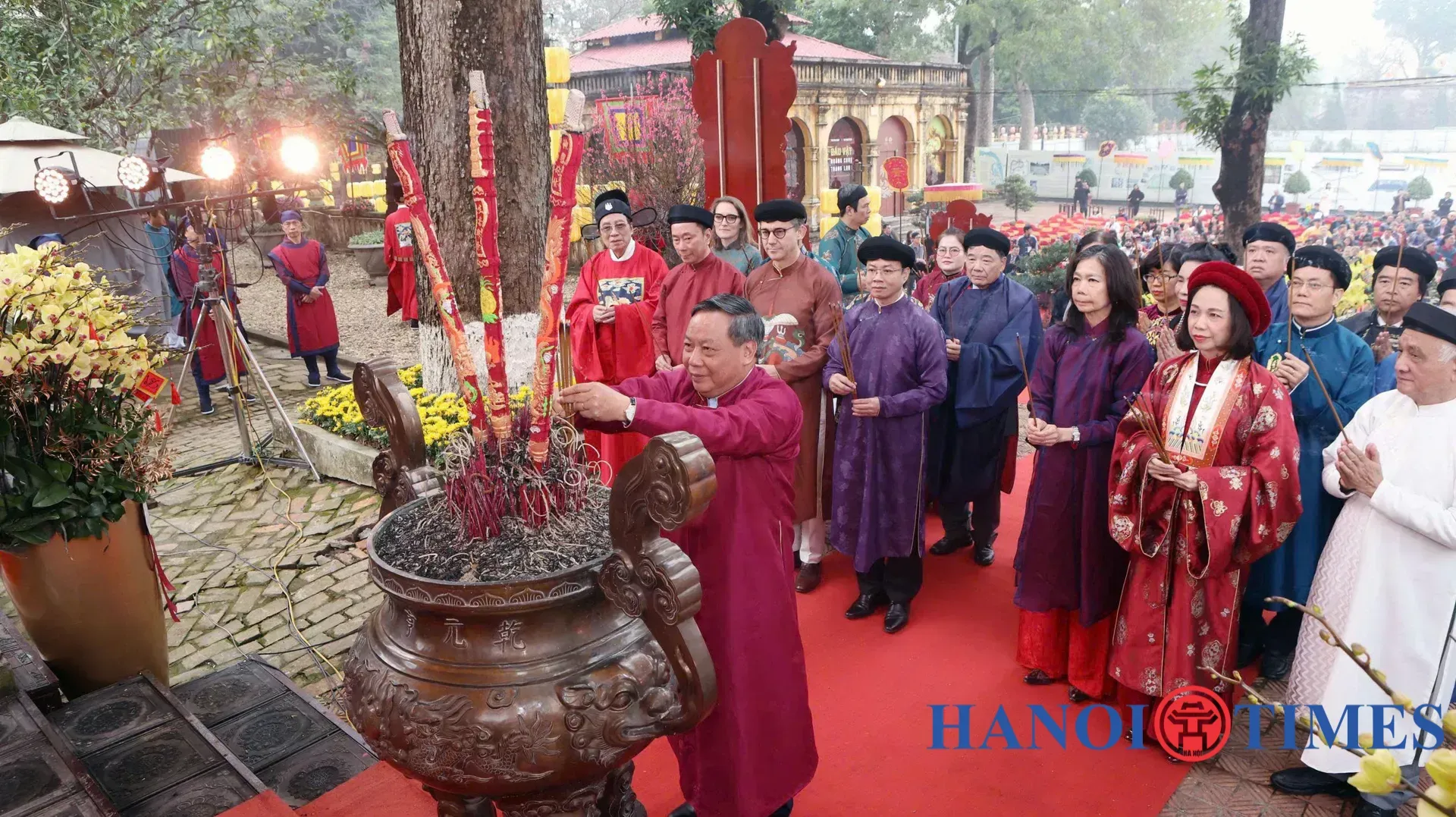 Deputy Secretary of the Hanoi Party Committee Nguyen Van Phong and delegates offered incense at Kinh Thien Palace.