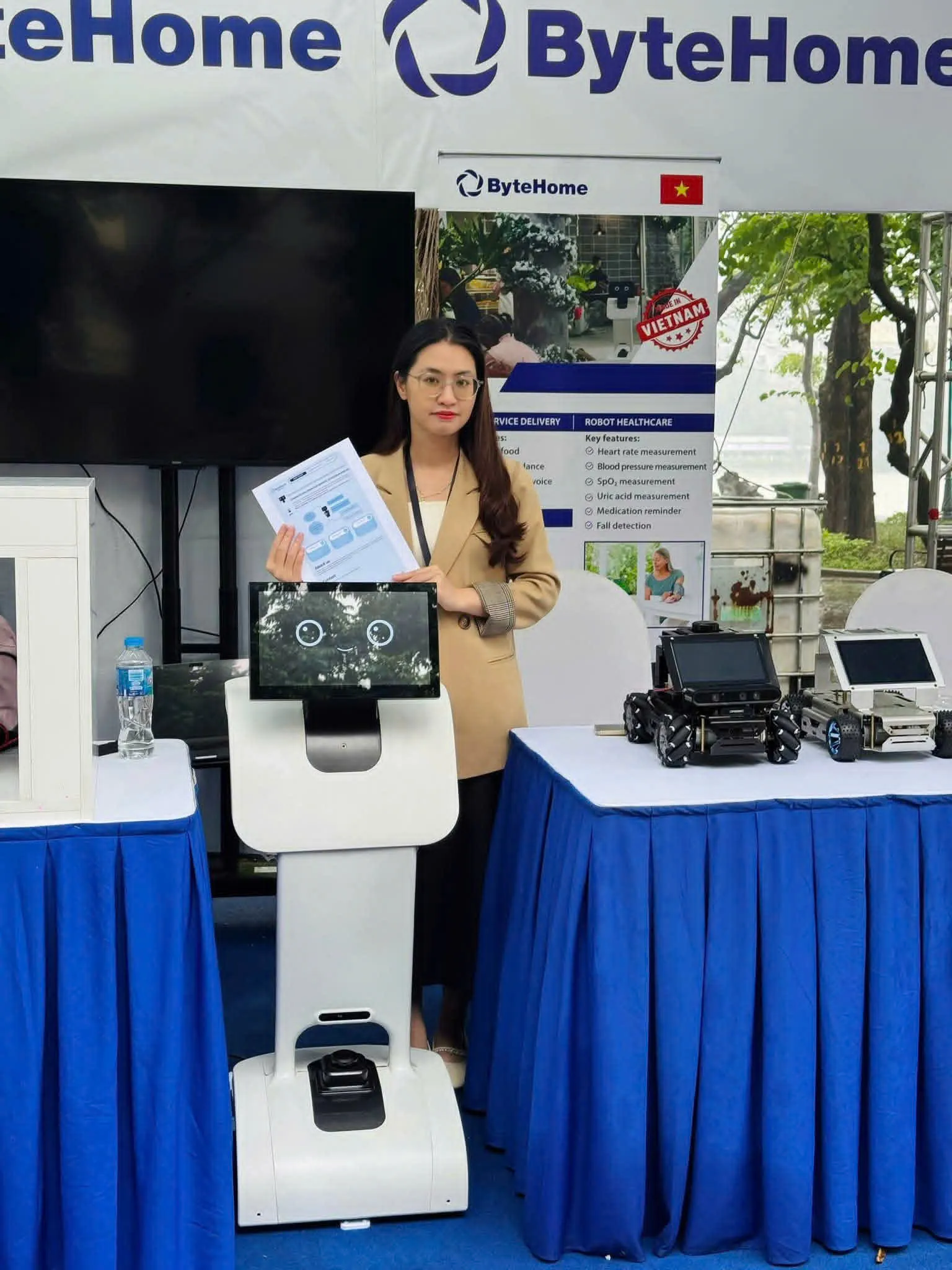 Nguyen Thuy Trang, a visitor from Hanoi's Cau Giay Ward, is interested in ByteHome's AI robots that is developed by Vietnamese team.