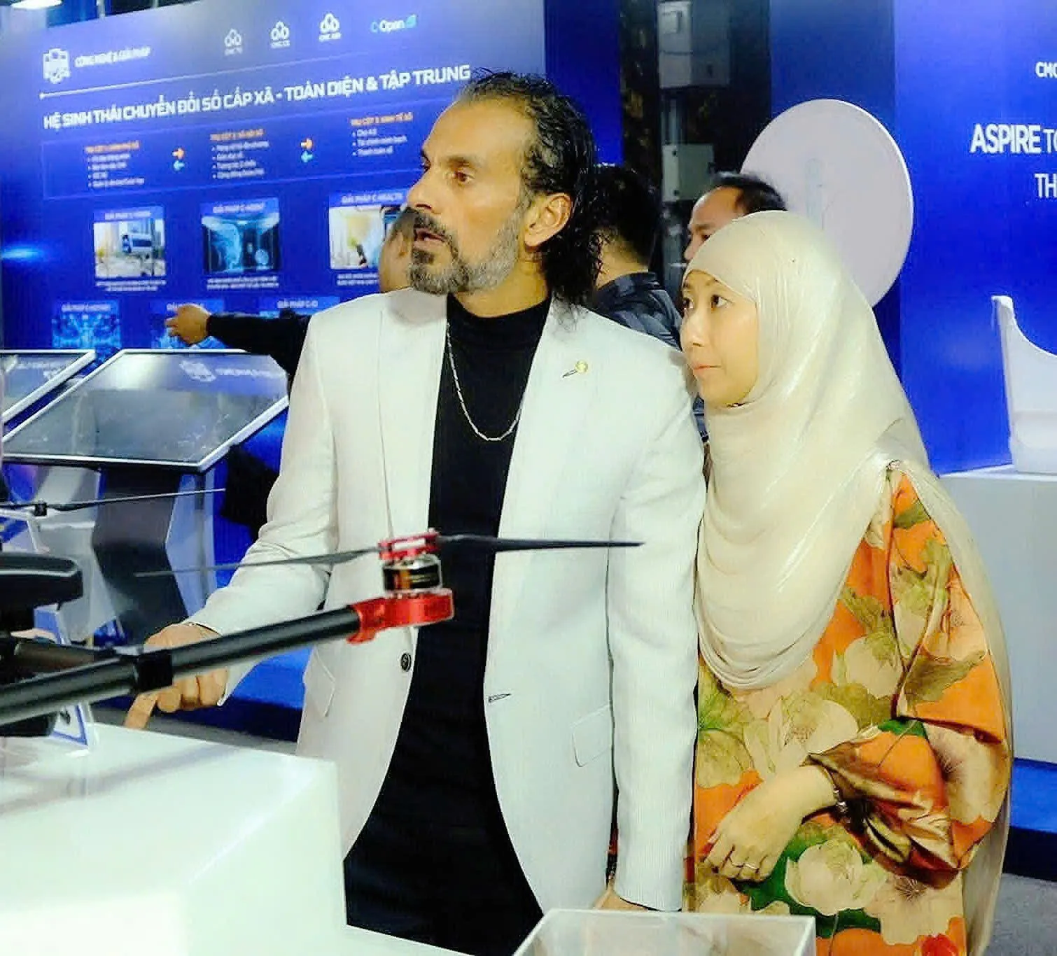 Omar Borkan, a tourist from the Middle East, and his wife at TECHFEST 2025.