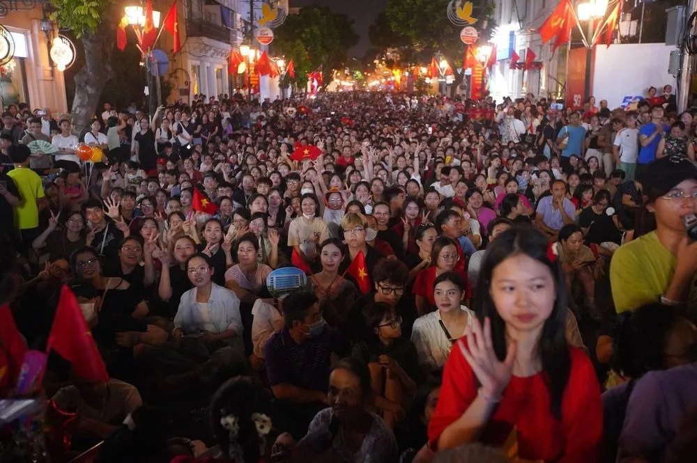 Crowds stretched beyond the square, with lines of spectators reaching as far as the Trang Tien-Ngo Quyen intersection.