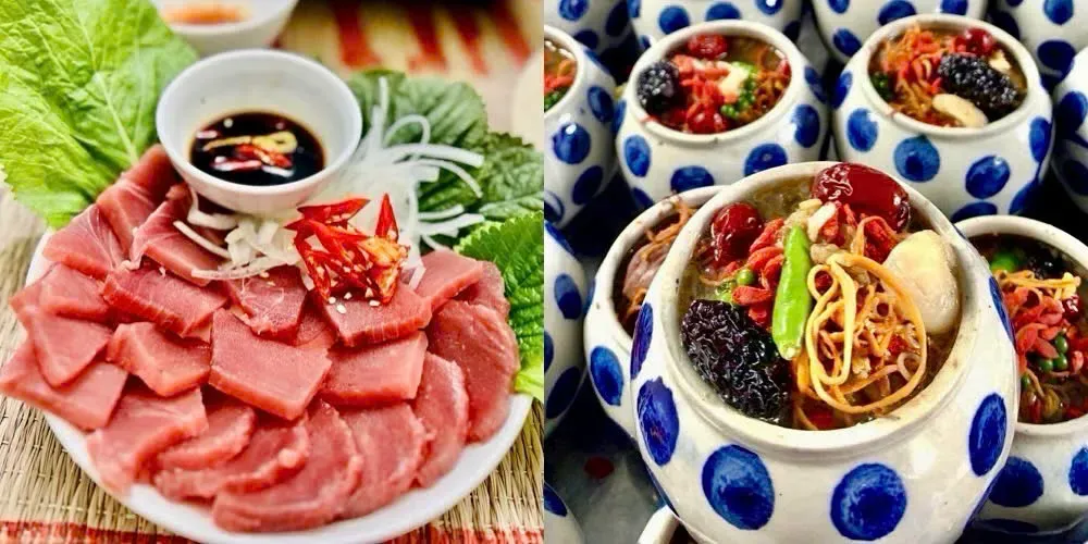 To the east, visitors can enjoy stewed tuna eyeballs with herbs, fresh tuna dishes, Hoa Da banh hoi with pork offal and seafood from O Loan Lagoon.