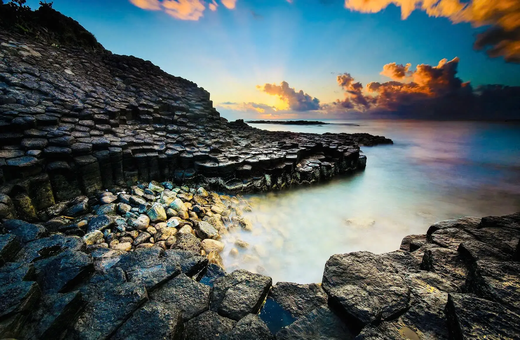 No eastern journey is complete without Ganh Da Dia. The site showcases unique stacked basalt columns where clear blue water meets gentle waves, creating one of the most distinctive coastal scenes in Vietnam.