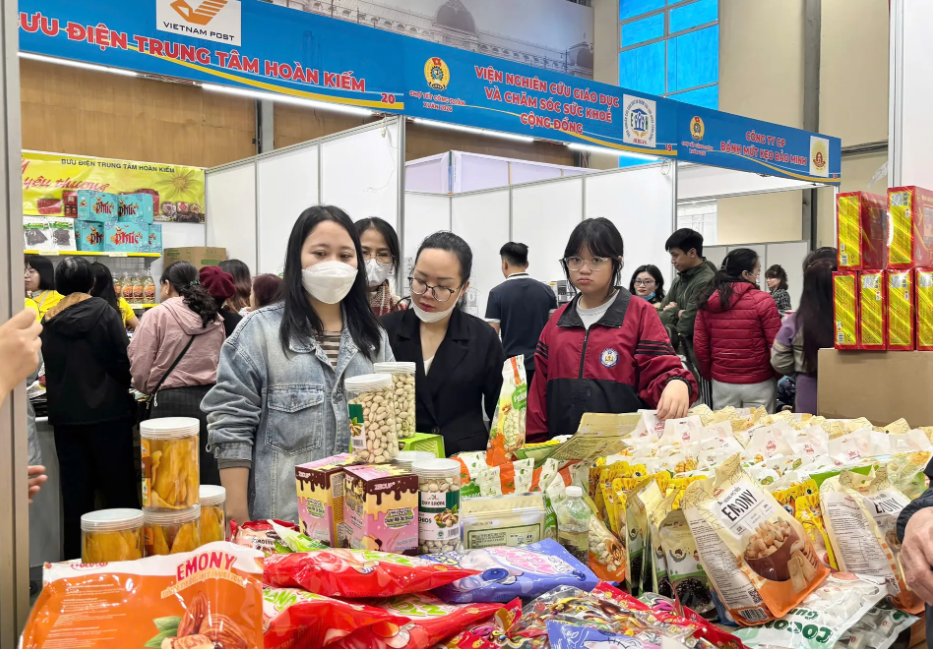 Union members and workers visit and shop at the Union Tet Market – Spring 2026, organized by the Hanoi Federation of Labor. Photo: Van Ha