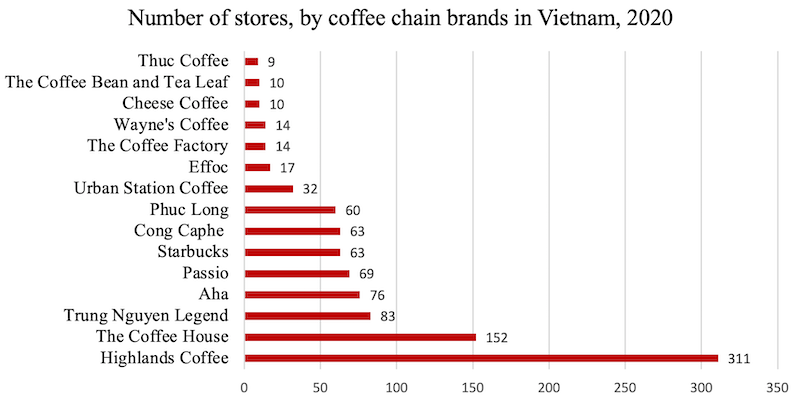 Revenue of coffee and tea retailers in Vietnam is estimated at US$1 billion in 2020, according to a recent report.