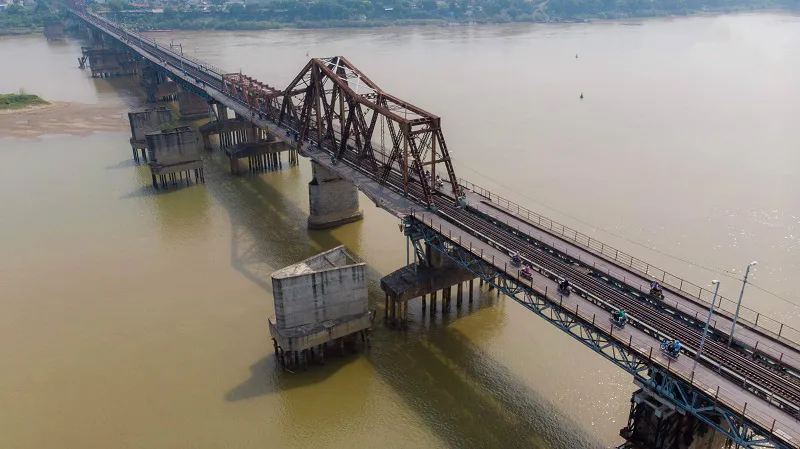 It is a two-storey bridge that was built about 30 years ago. Looking to the right side about two kilometres, we can see Nhat Tan bridge - a new modern bridge that has been operated for five years.