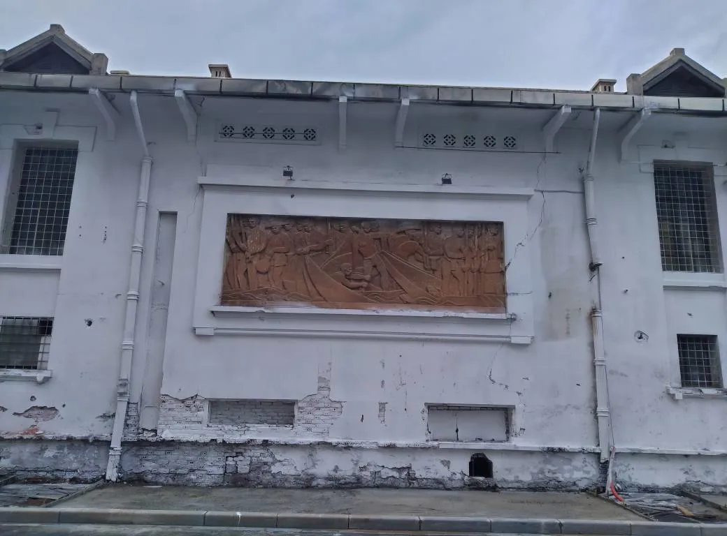 The striking relief, titled “Fishery” by Vietnamese painter Georges Khanh adorn the wall of the Fine Arts School of Indochina on the newly restored Hang Long Street. Photo: Xuan