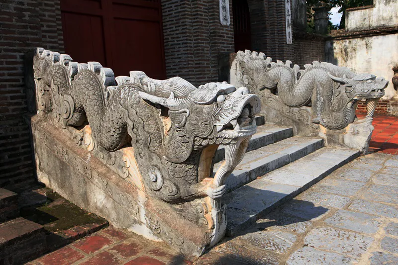 The dragons were carved on whole blocks of stone, with majestically curved bodies covered with scales all the way to their tails. The two sides of the doorstep have similar structures and decorative patterns and are the only ones associated with a famous relic dedicated to King An Duong Vuong - the founder of the Au Lac State in the 3rd century BC.