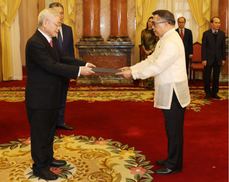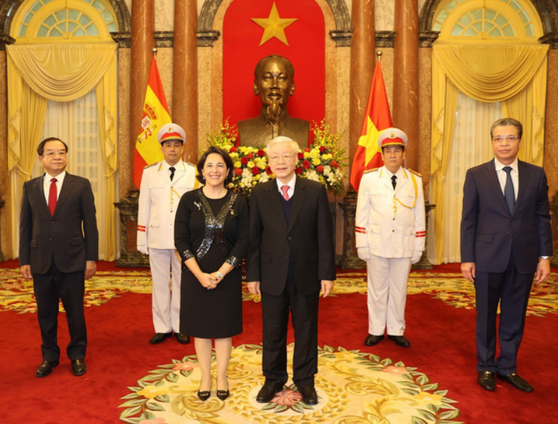 Ambassador of Spain María del Pilar Méndez Jiménez, Ambassador of Iran Ali Akbar Nazari, and Ambassador of the Philippines Meynardo Los Banos Montealegre last weekend presented letters of credence to Secretary General of the Communist Party of Vietnam and State President Nguyen Phu Trong.