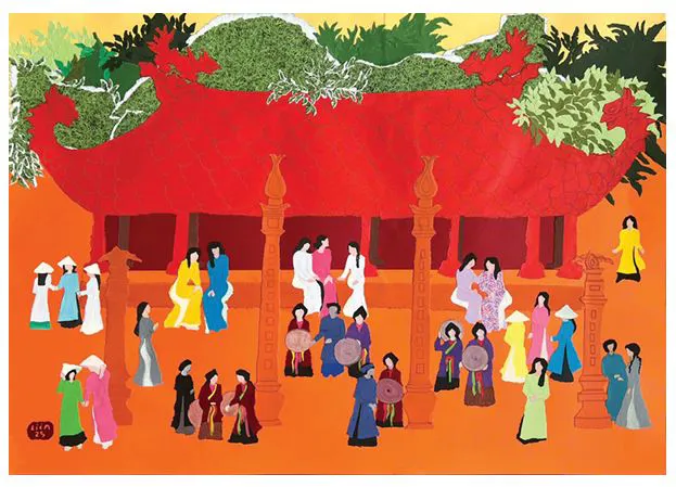 Running until September 29 at the Vietnam Museum of Fine Arts, the exhibition pays tribute to Tay Dang Communal House in Ba Vi, Hanoi. Through the perspectives of 17 contemporary artists, its distinctive beauty is vividly captured, reflecting the essence of a typical Red River Delta communal house.