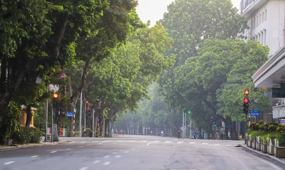 | A quiet street in Hanoi's downtown is under the strict social distancing order. Photo: Khanh Huy/ Phap Luat Xa Hoi |