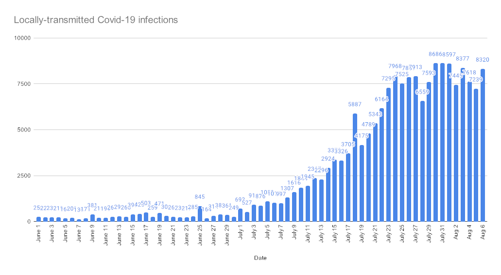 Today, Vietnam reported 8,320 more infections of community transmission, including half in HCMC and one-fourth in Binh Duong.