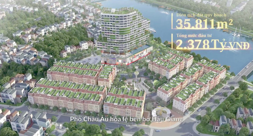 A highlight of the complex is that its architecture style is inspired by those from famous European cities such as Prague or Lisbon combining with the image of the unique floating market in Vietnam’s Mekong Delta region, making the project as a modern European quarter along the Hau Giang river.