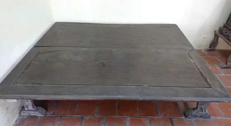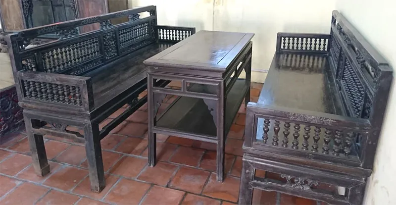 | The table and chairs set aside for Uncle Ho to work and discuss national affairs in Madam An’s house. |