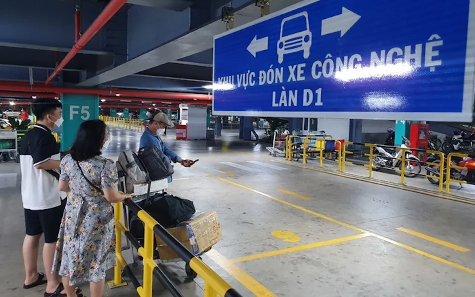 | Travelers await taxis and ride-hailing cars at Tan Son Nhat International Airport. Photo: Hong Phuc/The Hanoi Times |