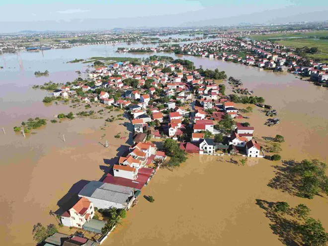 A view of widespread flooding in the northern province of Bac Ninh seen from above. Photo: Lao Dong Newspaper