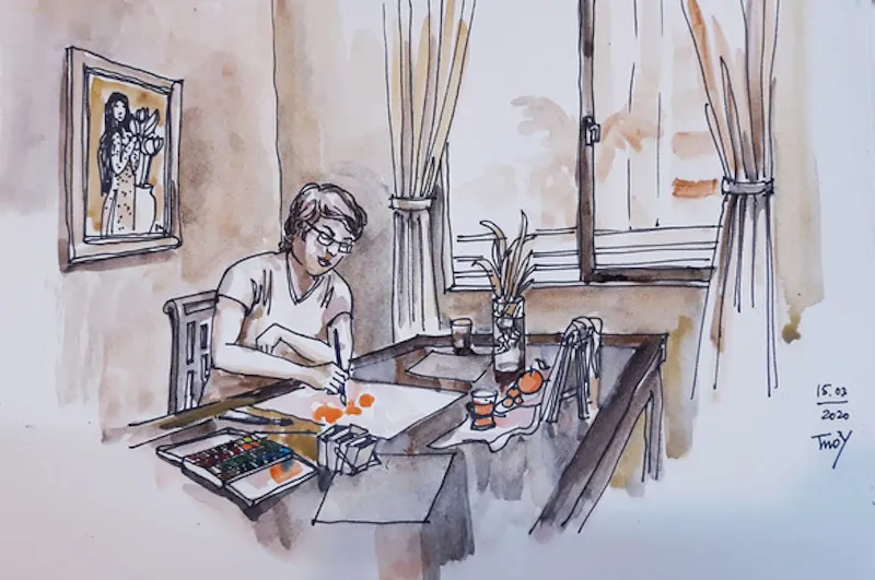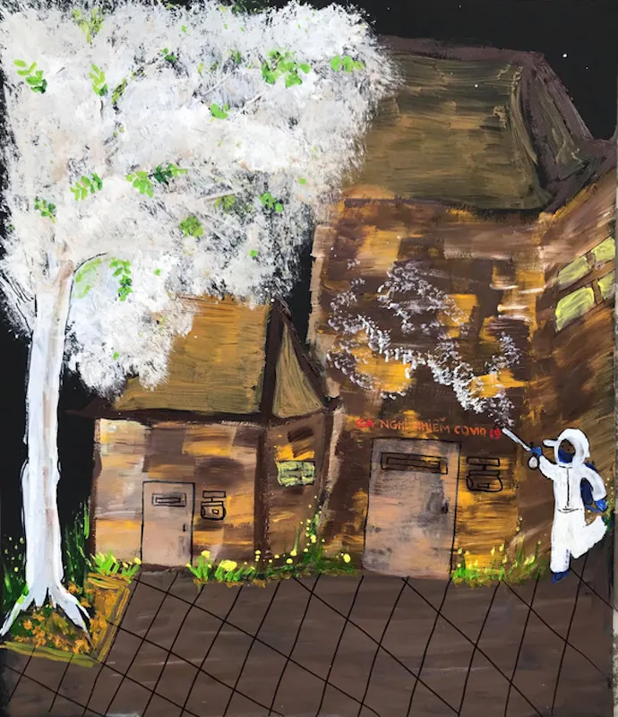 Paintings of Hanoi`s peach blossoms, the symbolic Tet flower of the North, by Nguyen Huu Khoa are being displayed at an exhibition called Dao Xuan (Spring Peach Blossoms) on January 20.