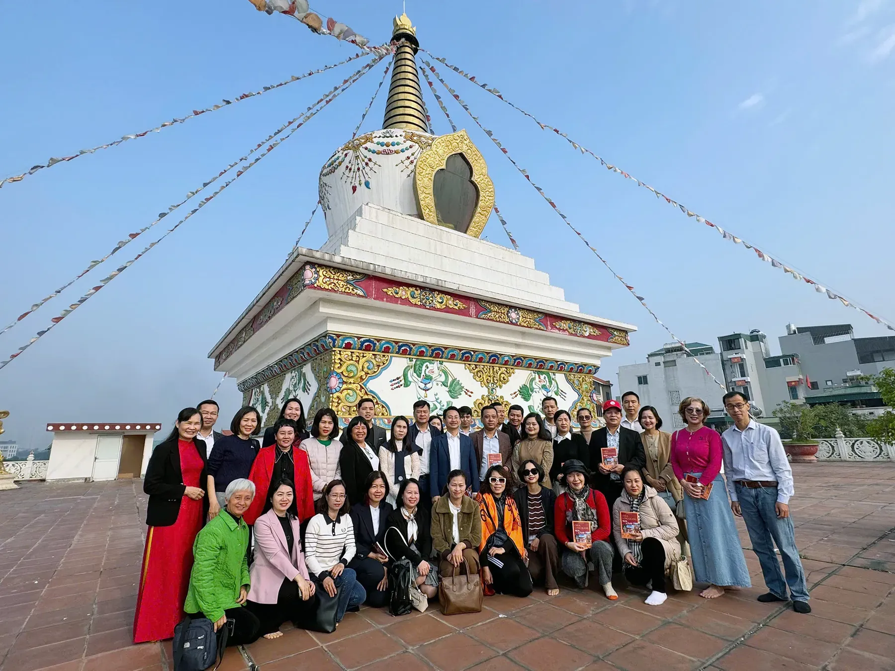 Travel professionals experience the captivating beauty of Long Quang Pagoda in Thanh Liet Ward, Hanoi. Photo: Le Nam/ The Hanoi Times
