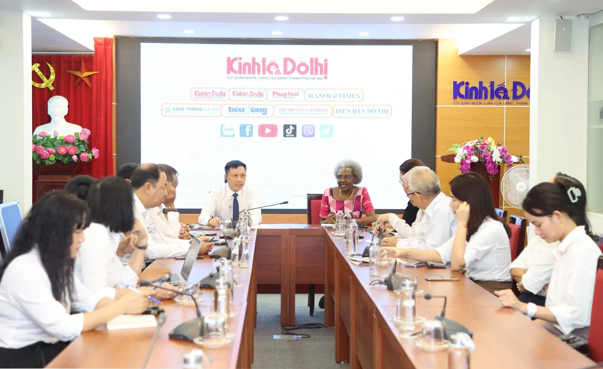 | Editor-in-Chief of Economics and Urban Newspaper Nguyen Thanh Loi chairs the meeting with ActionAid delegation led by Chairwoman of the Board of ActionAid International Hellen Grace Akwii Wangusa. Photo: Thanh Hai/The Hanoi Times |