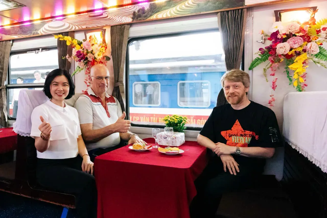 Foreign passengers experience traveling by train on the North-South Railway line or Reunification Express. Photo: Vietnam Railways