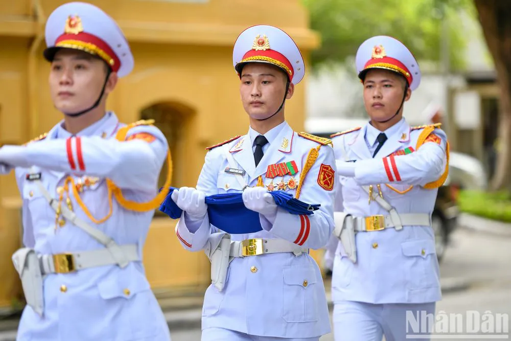 | The flag-raising ceremony opens in Hanoi on August 8. Photo: Nhandan |