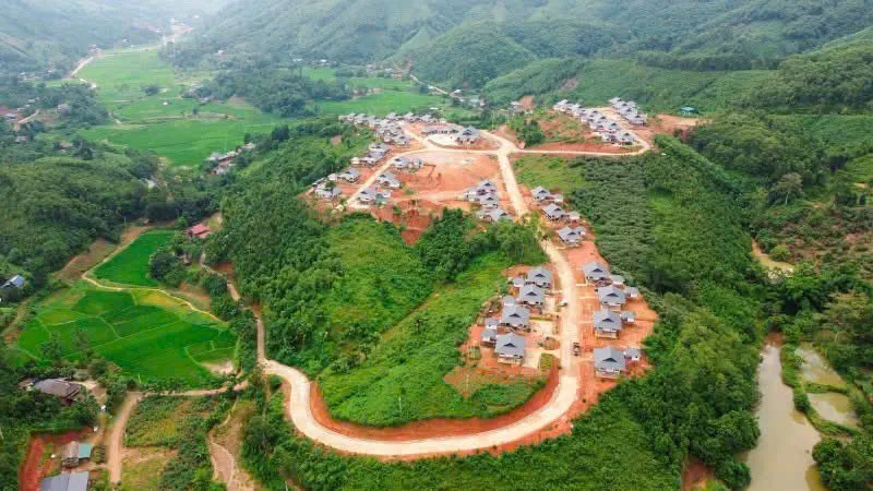 Authorities built 40 sturdy stilt houses in the traditional Tay architectural style, together with a cultural hall, classrooms, roads and power facilities.