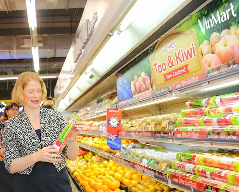 New Zealand Ambassador to Vietnam Wendy Matthews attends the apple and kiwi imported festival from New Zealand held in Hanoi and Ho Chi Minh in June 2020. |