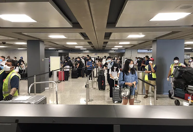 | Vietnamese passgners at an airport in the US waiting to fly home. Photo: MOFA |